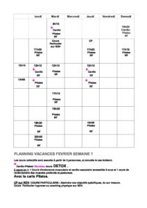 Planning vacances Février 2020 Semaine 1